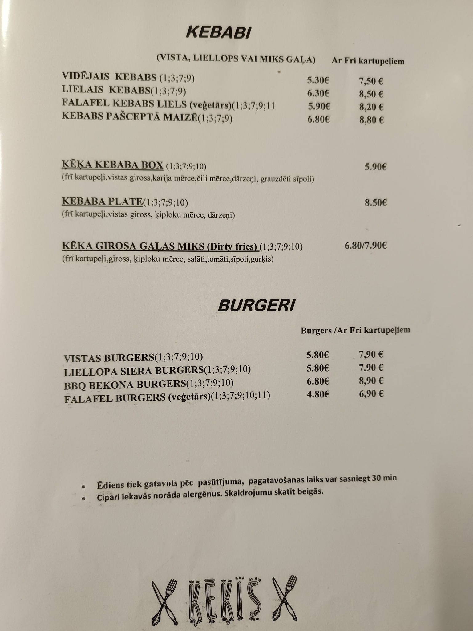 Ķēķis Ēdienkarte