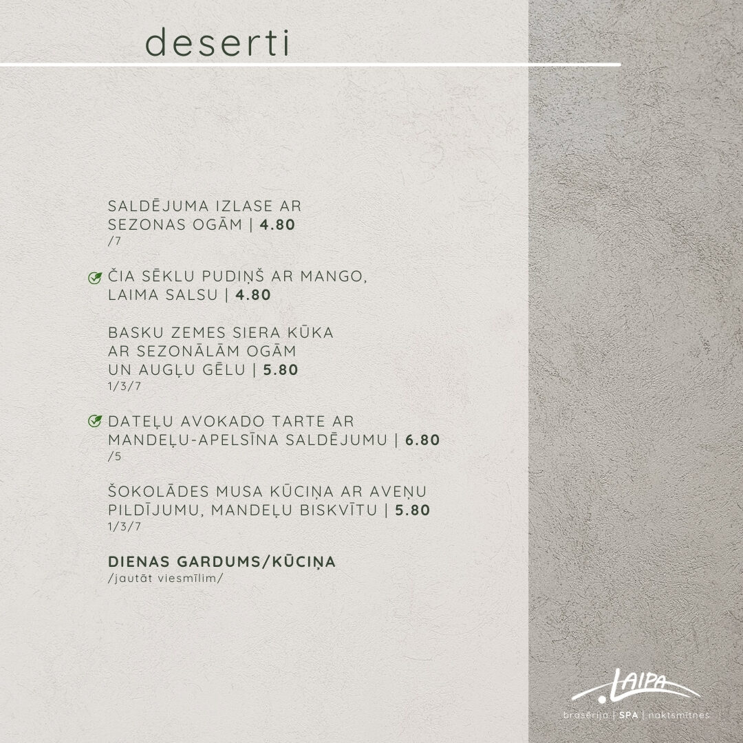 Mūsu Ēdienkarti var aplūkot Galerijā.