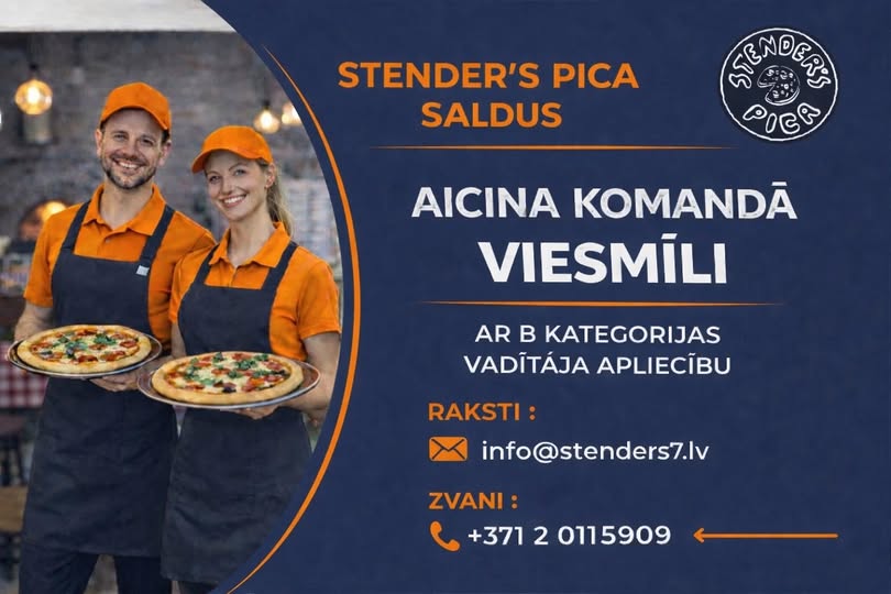 Stender’s pica Saldū aicina komandā – Viesmīli ar B kategorijas vadītāja apliecību Raksti : info@stenders7.lv vai zvani : +371 20115909