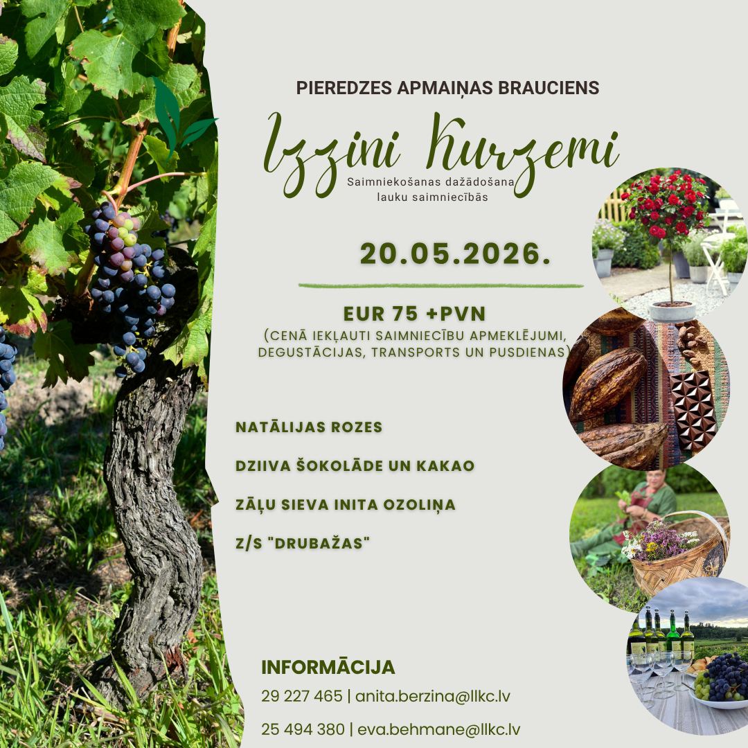 Cenā iekļauts transports, pusdienas, saimniecību apmeklējumi un degustācijas